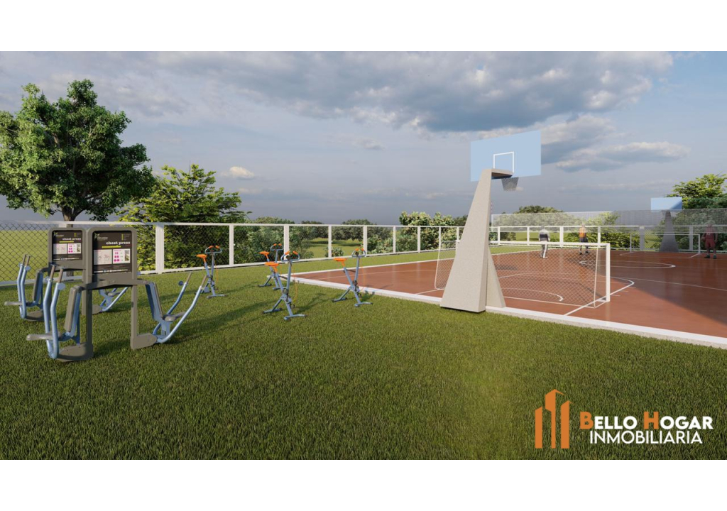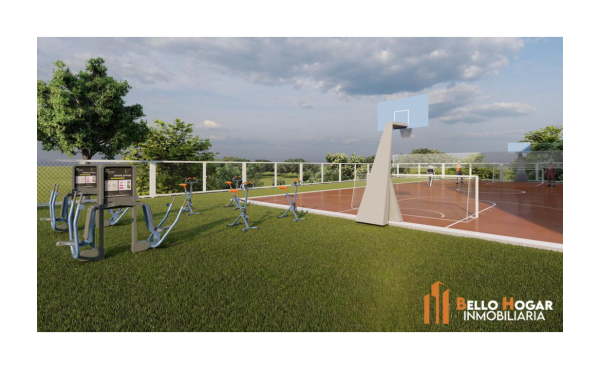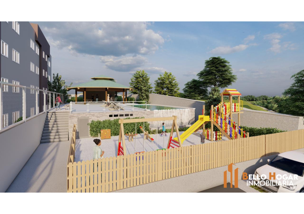 Área de recreación con juegos infantiles.