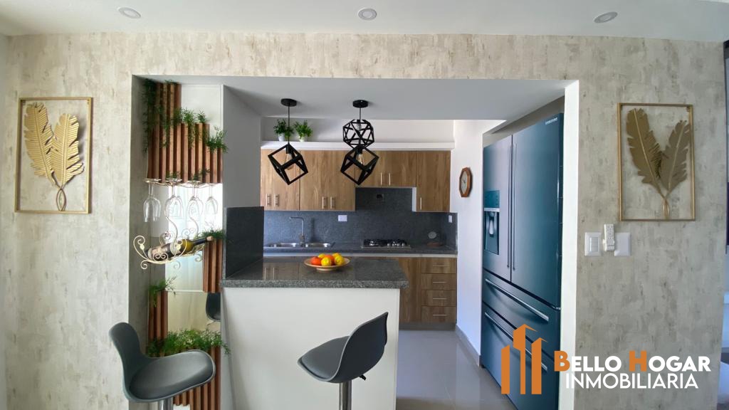 Cocina moderna con desayunador.